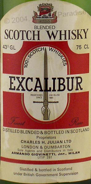 Clear glass - Rectangular bottle - White sword in black label printed in gold - Giovinetti import (Italy)