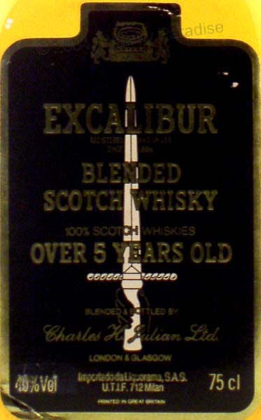 Clear glass - Rectangular bottle - White sword in black label printed in gold - gold cap - Liquorama import (Italy)
