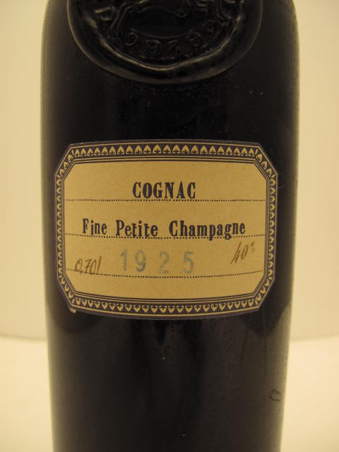 Petite Champagne Cognac 1924 - Dark glass - Tall bottle - Cream label - Cloth around the cap with wax seal - Blob seal