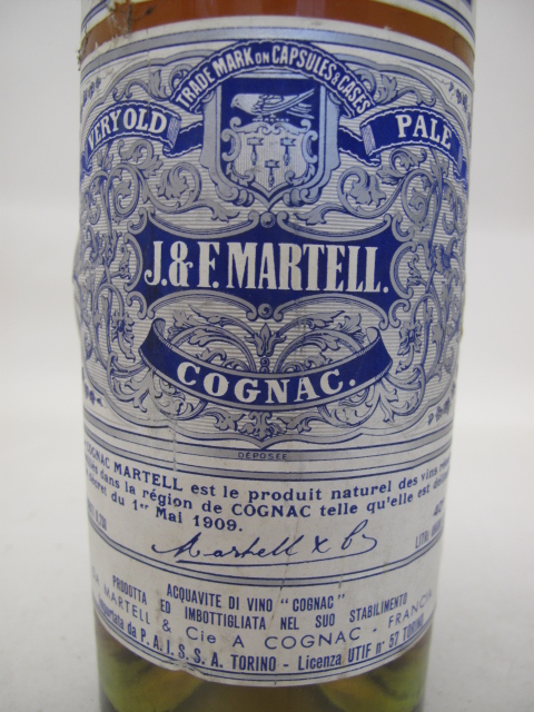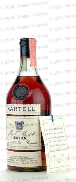 Cordon Rubis J.&F. Martell Reserve - Clear glass - Dumpy bottle - Vertical stripe fixed by embossed red seal - Red label printed in red - For export in Italy