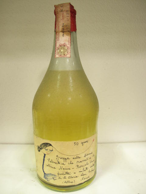 Grappa della Donna Selvatica - Handwritten label - "Woman with long neck" picture - Cork drive - Black capsule