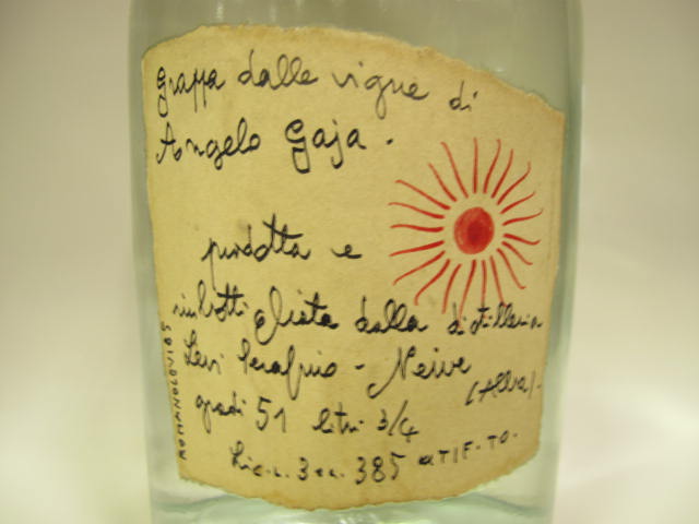 Grappa delle Vigne di Angelo Gaia - Handwritten label - Sun picture - Cork drive - Black capsule