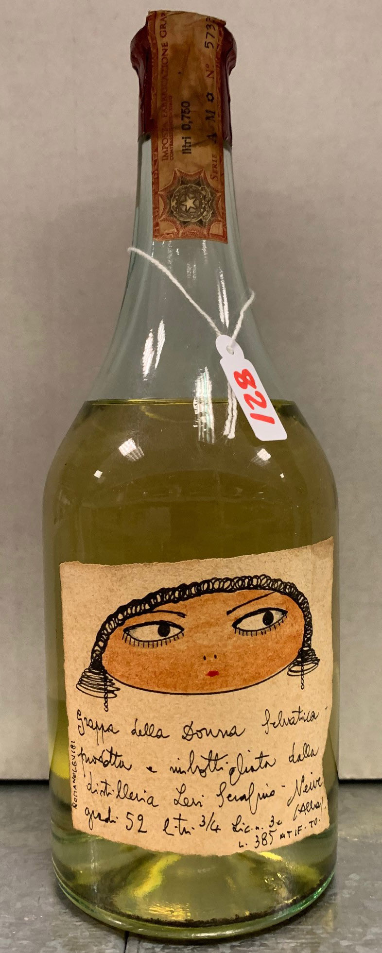 n° 821 - "Grappa della Donna Selvatica" - Face in handwritten label - Cork drive