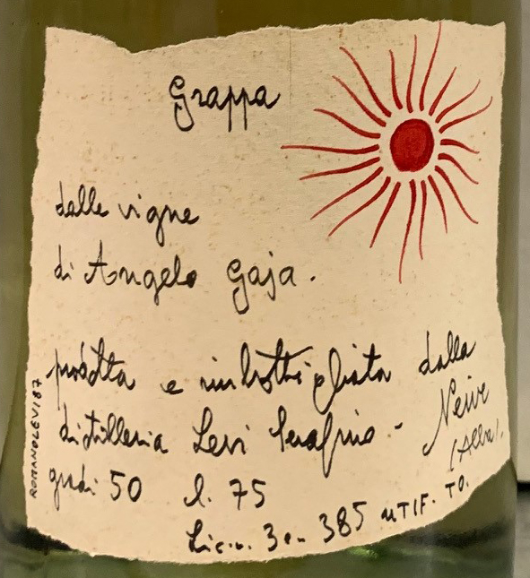 n° 812 - "Grappa dalle vigne di Angelo Gaja" - Sun in handwritten label - Cork drive