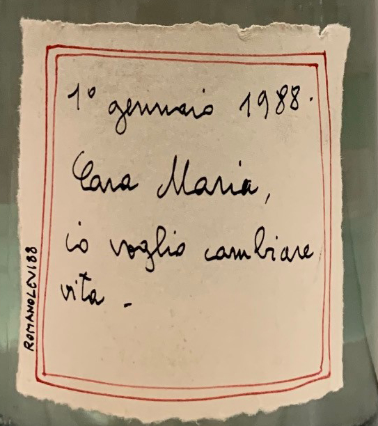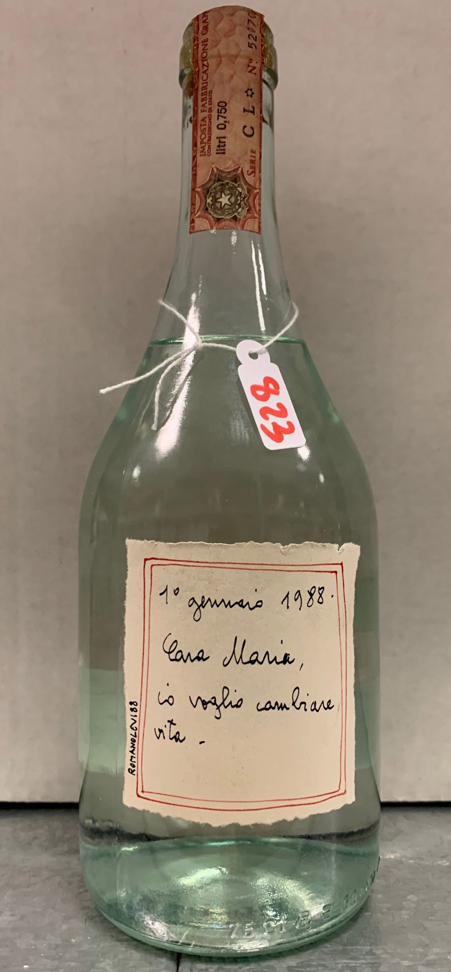n° 823 - "1° Gennaio 1988 Cara Maria, io voglio cambiare vita" - Handwritten label - Cork drive