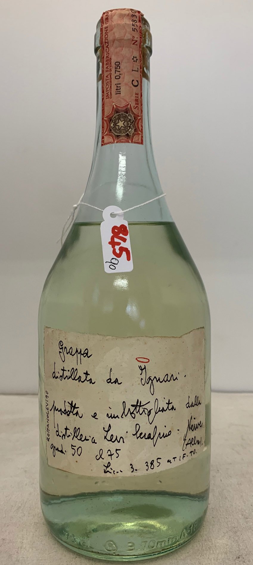 N° 845 - "Grappa distillata da Ignari" - Handwritten label - Cork drive