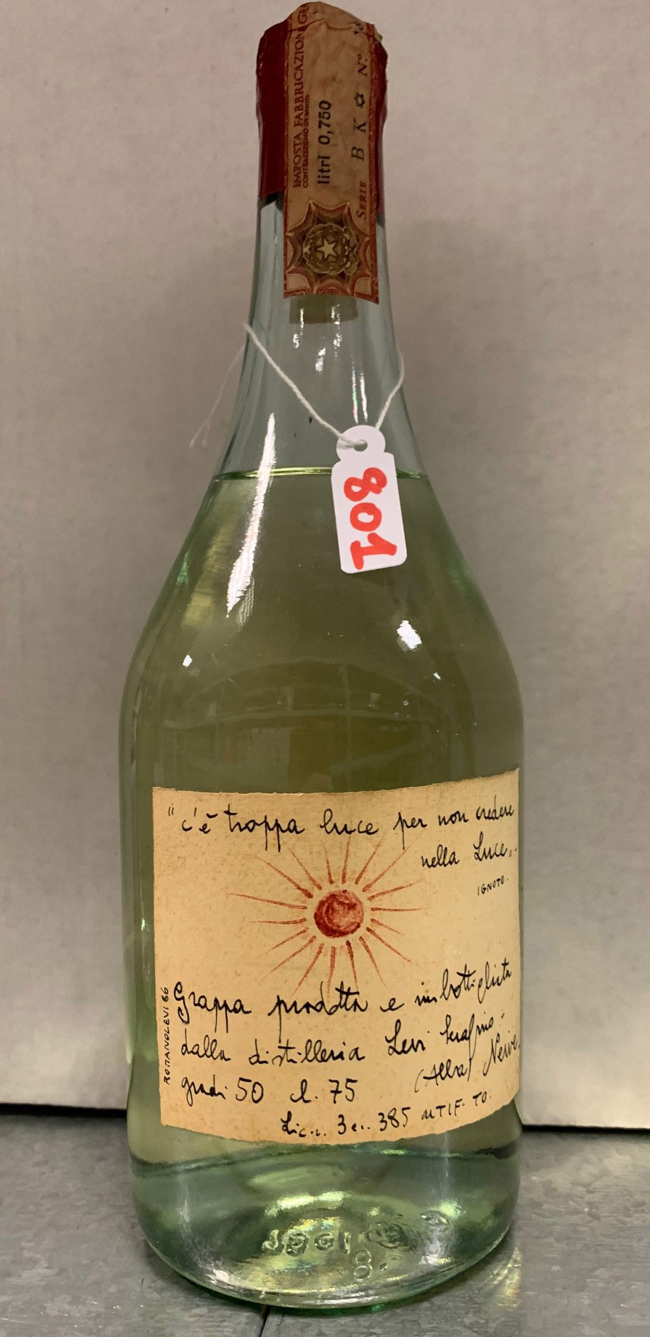 n° 801 - "c'è troppa luce, per non credere nella Luce" - Sun in handwritten label - Cork drive
