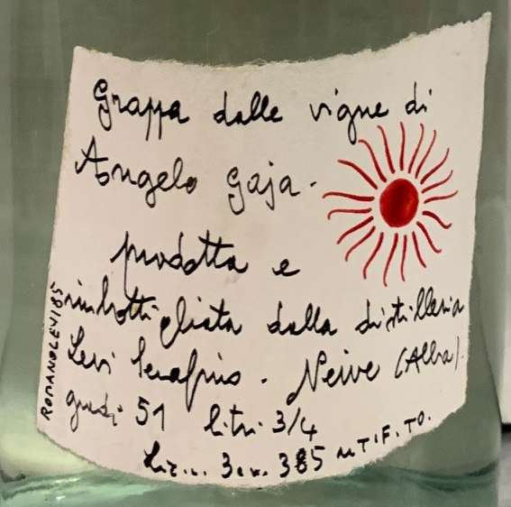 n° 802 - "Grappa dalle vigne di Angelo Gaja" - Sun in handwritten label - Cork drive