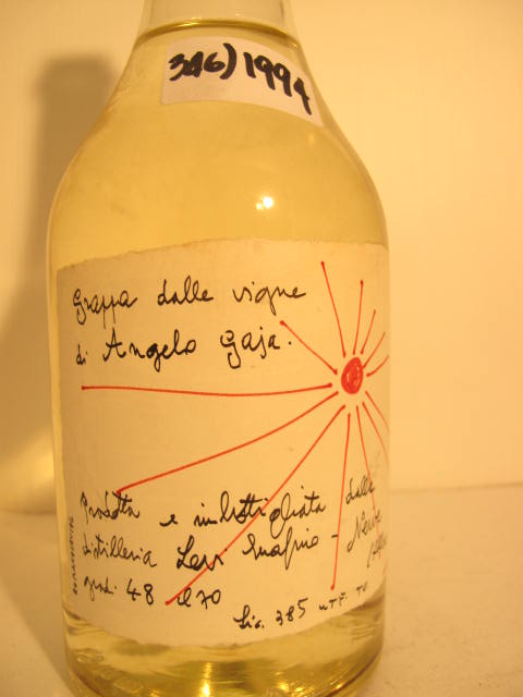 n° 346 - "Grappa dalle vigne di Angelo Gaja" - Sun in handwritten label - Cork drive