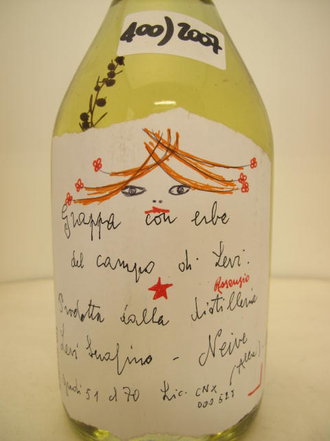 n° 400 - "Grappa con erbe del campo di Levi" - Head girl in handwritten label - Cork drive