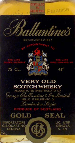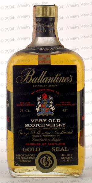 Ballantine's 12 - Gold seal - Clear glass - Rectangular flat bottle - Black label - Gold capsule printed in black