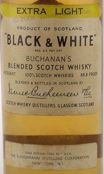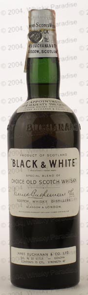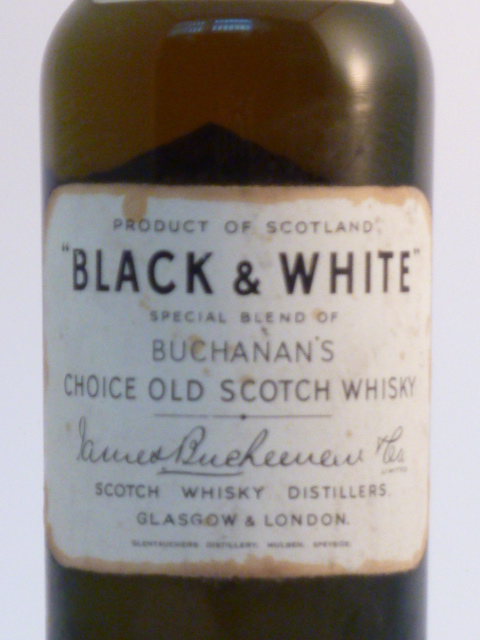 Dark glass - tall bottle - Black print in white label - Metal seal - Buchanan & Co. import (Italy) tin cap