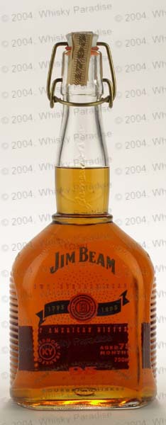 Clear glass - Squre bottle long necked - Brand stencilled on the glass - Horizontal groove lines