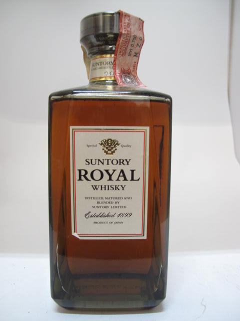 Old Suntory - Black glass - chestnut bottle - Cream label printed in red & black - Red cap