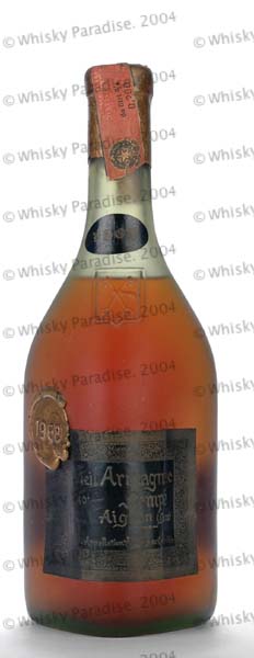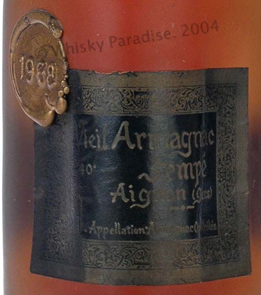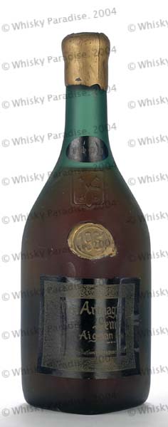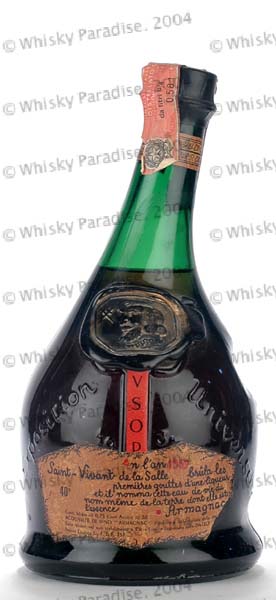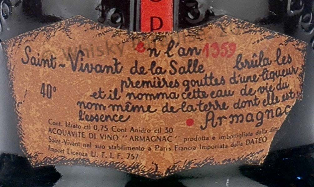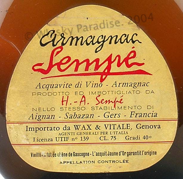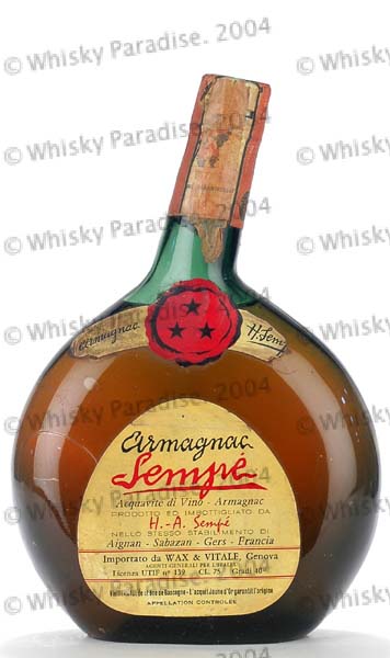 Green glass - Rounded flat bottle wrong necked - Black & Red print in cream label - Three stars - Wax & Vitale import (Italy)