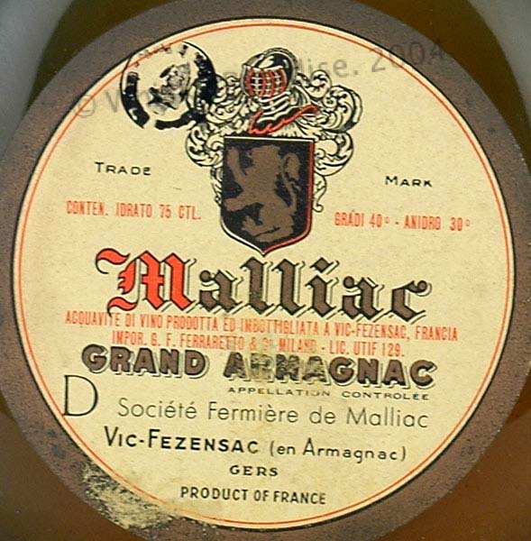 Green glass - Rounded flat bottle - Rounded label - Red oval on the neck - Ferraretto import (Italy)