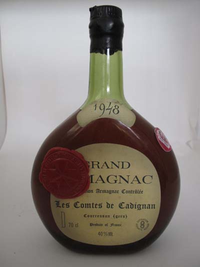 Three star - Green glass - Squat bottle - Cream shaped label printed in black & gold - Blob seal - Dark blue screw cap