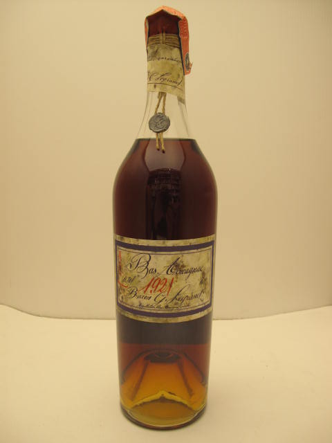 Bas Armagnac 1921 - Clear glass - Tall bottle - Clear handwritten label - Cork drive with tax seal