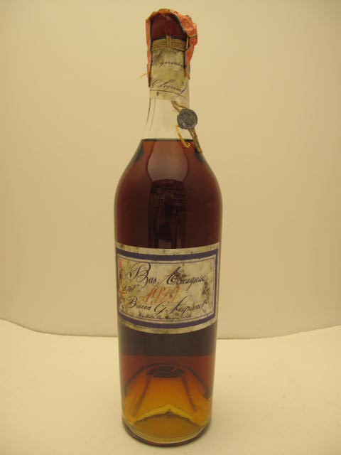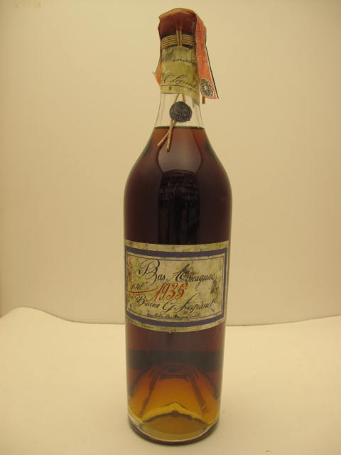 Bas Armagnac 1935 - Clear glass - Tall bottle - Clear handwritten label - Cork drive with tax seal