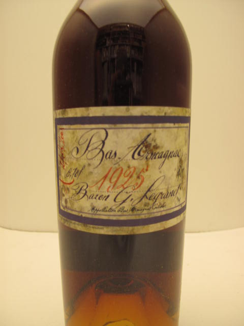 Bas Armagnac 1925 - Clear glass - Tall bottle - Clear handwritten label - Cork drive with tax seal