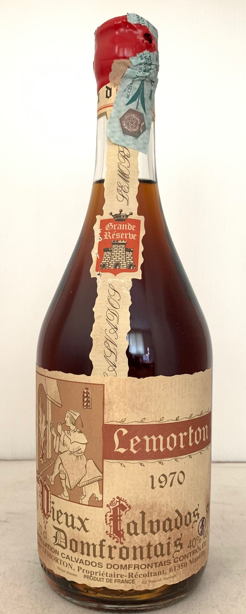 Grande Réserve - Vieux Calvados du Domfrontais - Anneč 1970 - Picture in early cream label printed in red - Cork drive - Red capsule