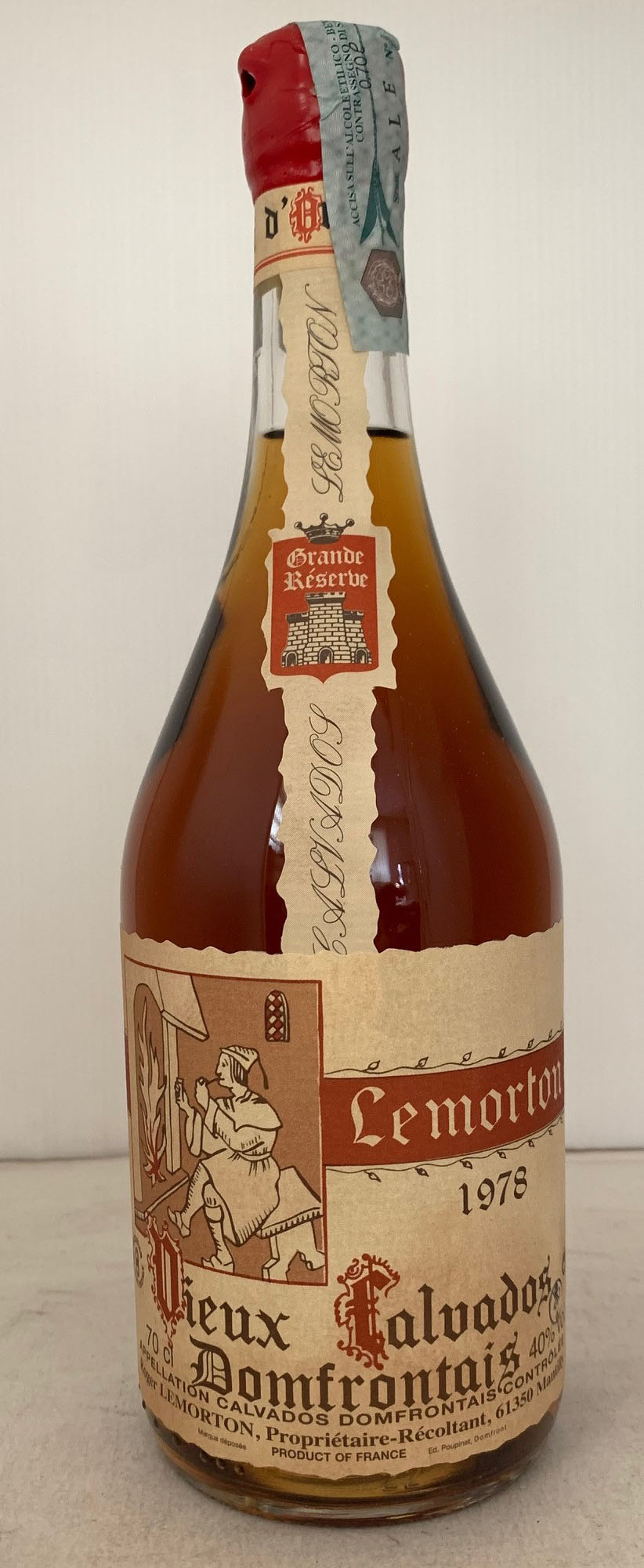Grande Réserve - Vieux Calvados du Domfrontais - Anneč 1978 - Picture in early cream label printed in red - Cork drive - Red capsule