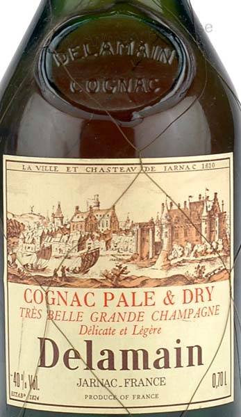 Pale & Dry Très belle Grande Champagne - Green glass - Bottle wire wrapped - Early picture in cream label - Brand in shoulder blob - Black cap