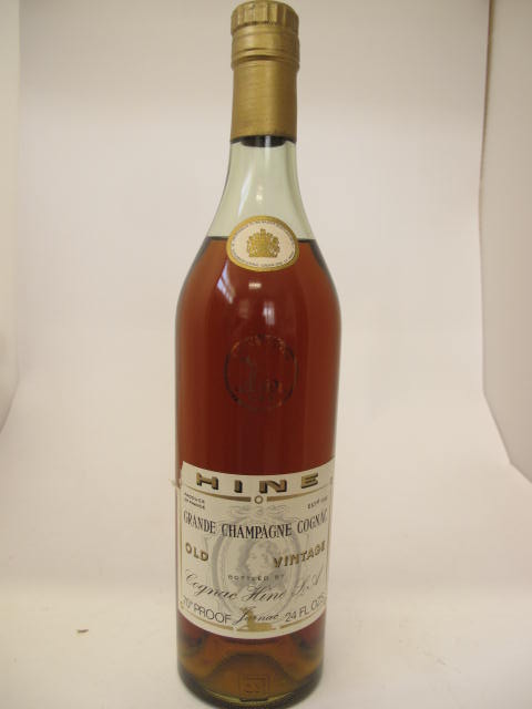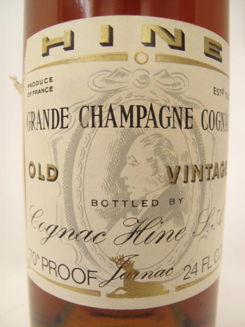 Old Vintage - Grande Champagne Cognac - Clear glass - Tall bottle - Portrait in cream label - Cork drive - Gold capsule