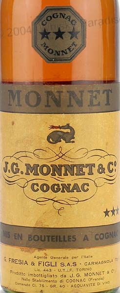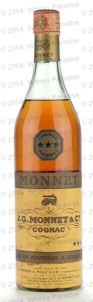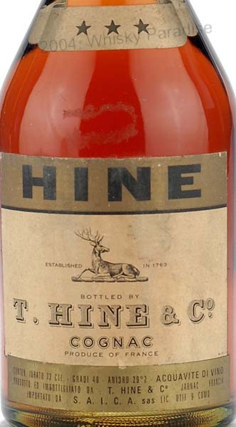 3 Stars - Clear glass - Dumpy bottle - Cream and gold label with deer picture - Cork drive - Gold capsule - SAICA import (Ita)