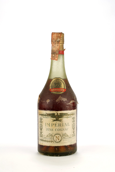 FIne Cognac - Green glass - Dumpy bottle - Red & white label - Cork drive - Gold capsule - S.I.LI Import (ITA)