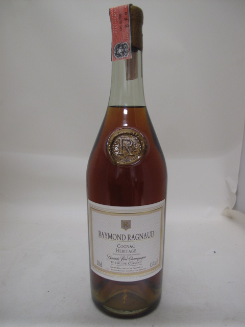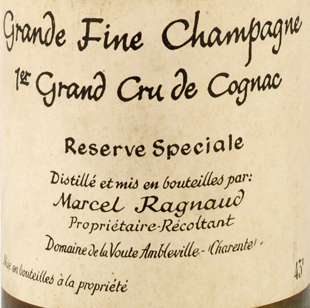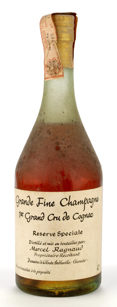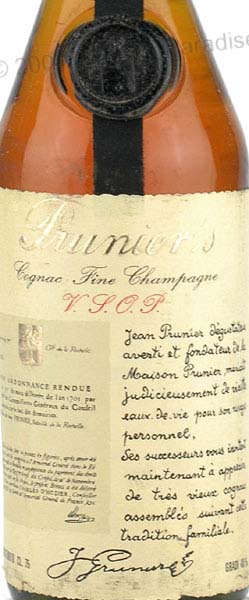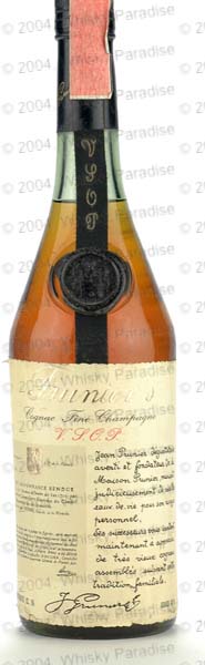 VSOP Grande Fine Champagne - Clear glass - Tall bottle - Cream label printed in gold & black - Black seal in shoulder blob - Black ribbon & cap