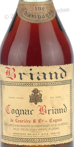 Fine Champagne De Laurière - Clear glass - Dumpy bottle - Cream label printed in black & red - Gold cap - N.P.T. import (Italy)