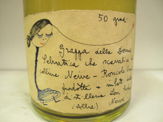 Grappa della Donna Selvatica - Handwritten label - "Woman with long neck" picture - Cork drive - Black capsule