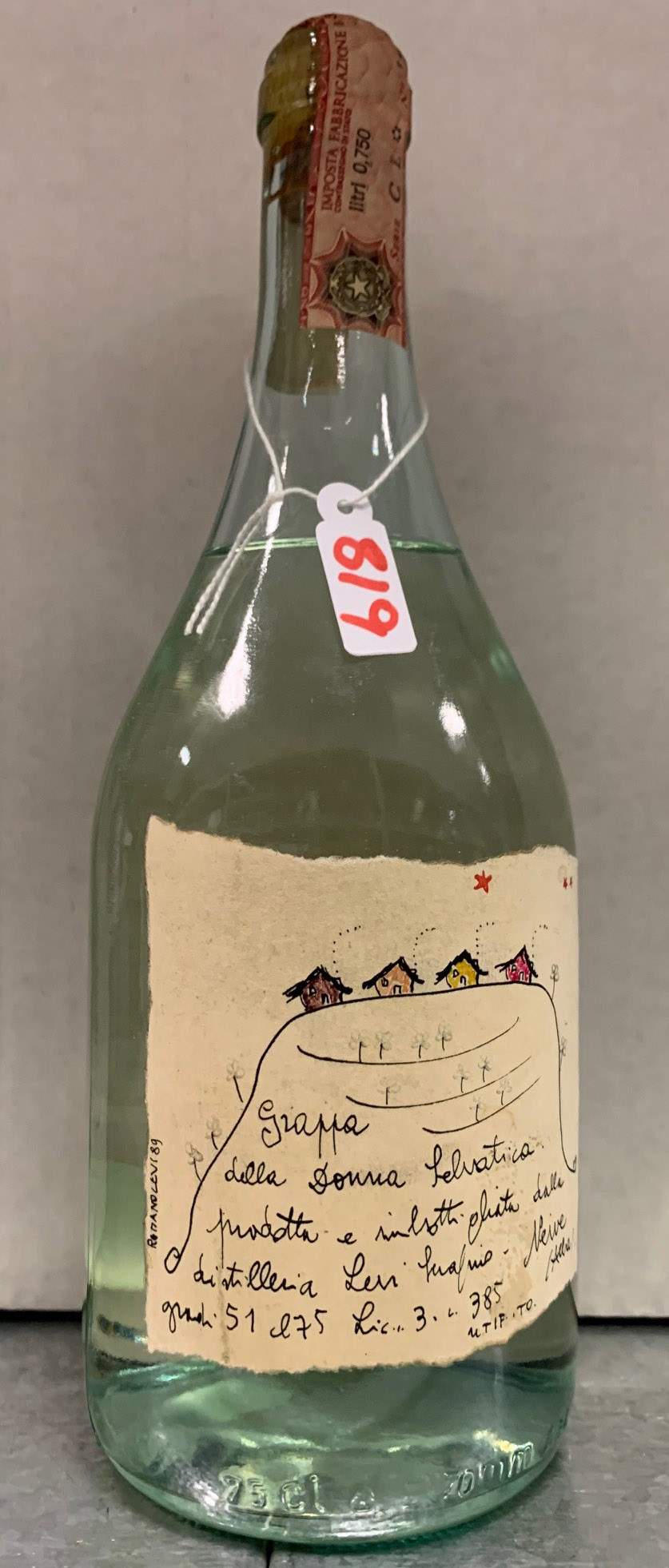 n° 819 - "Grappa della Donna Selvatica" - Houses in hill picture in handwritten label - Cork drive