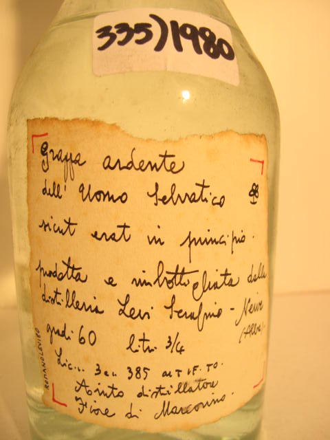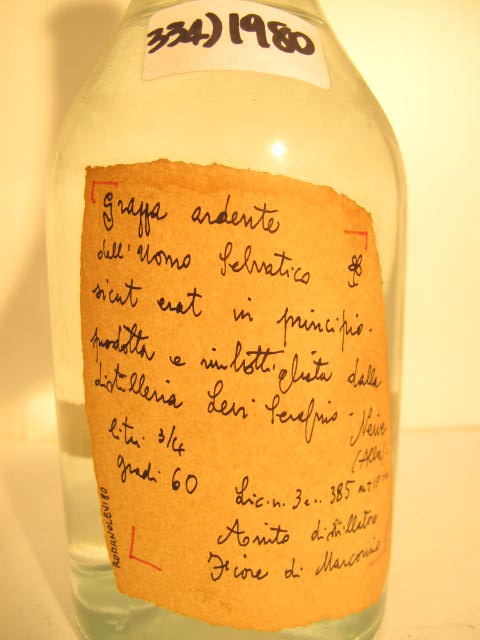 n° 335 - "Grappa ardente dell'Uomo Selvatico…" - Handwritten label - Cork drive - Dark capsule