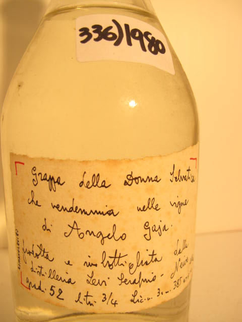 n° 336 - "Grappa della Donna Selvatica che vendemmia nelle vigne di Angelo Gaja" - Handwritten label - Cork drive - Red capsule