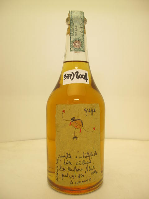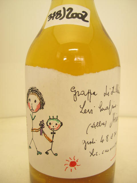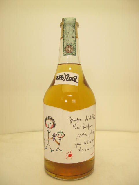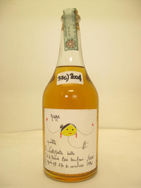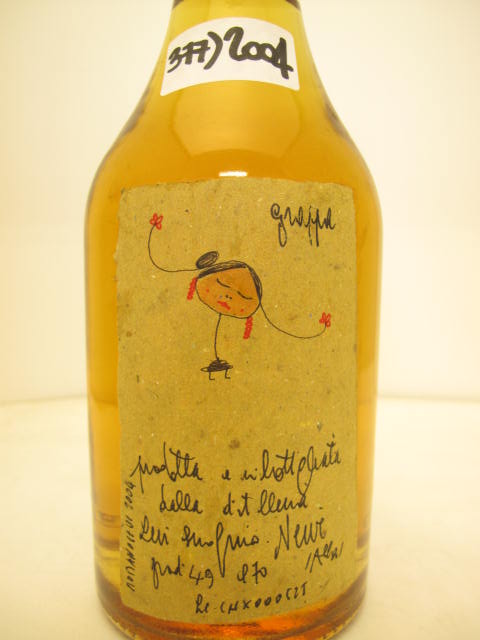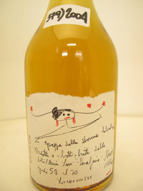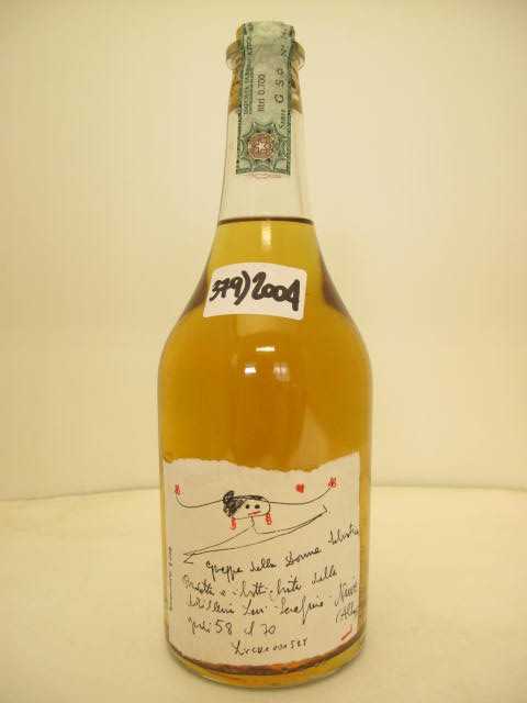 n° 379 - Amber grappa - "Grappa della Donna Selvatica" - Girl with braids and earring - Handwritten label - Cork drive