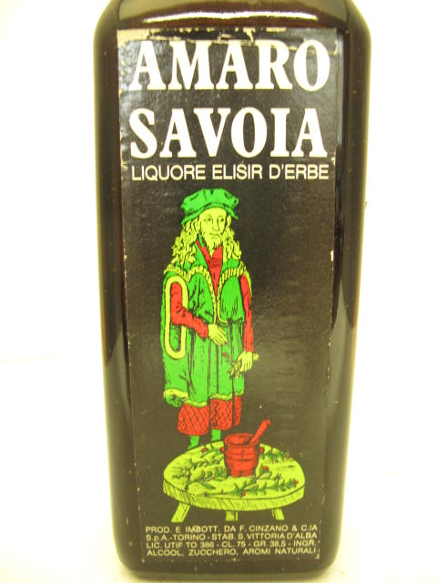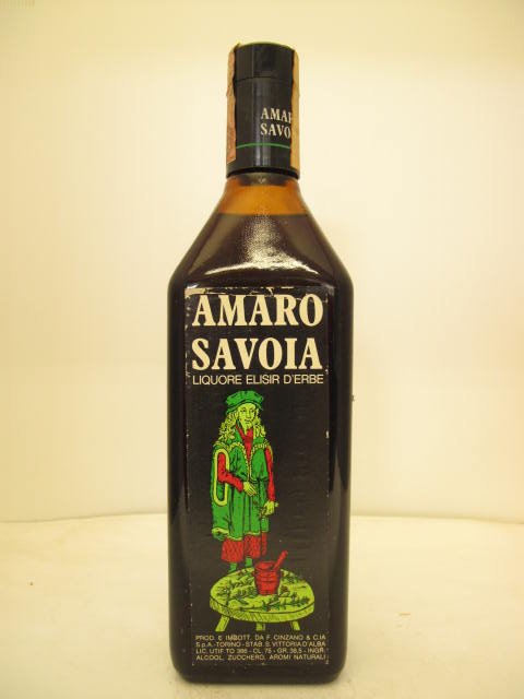 Amaro Savoia - Dark glass - Tall square bottle - Painting picture - Dark plastic cap