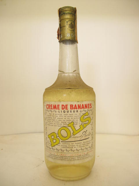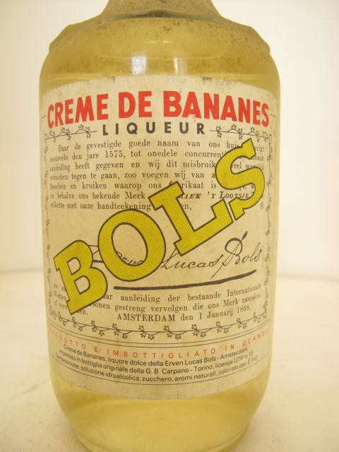 Creme de Bananes - Clear glass - Dumpy bottle - Clear label - Fluted neck - Gold screw cap - Carpano import (Ita)