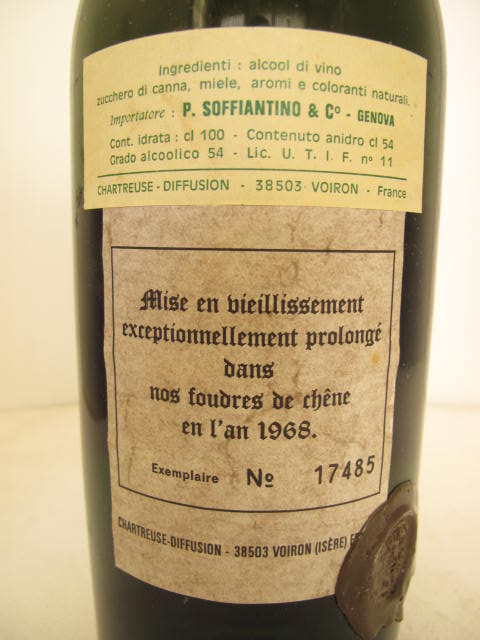 Numbered bottle - Dark glass - Big bottle - Light brown label - Wax seal - Red capsule - Soffiantino Import (Ita)