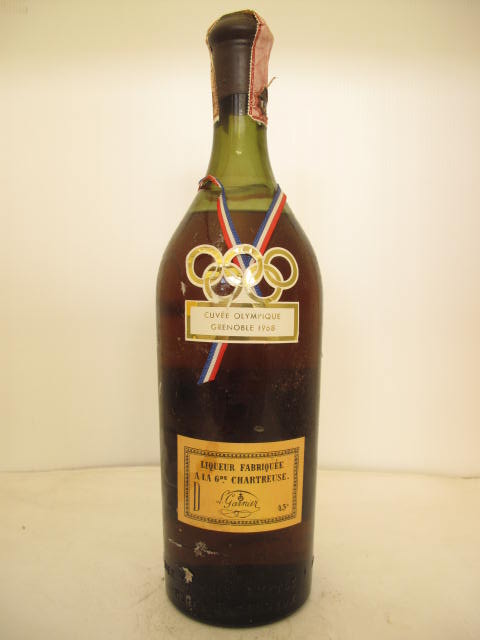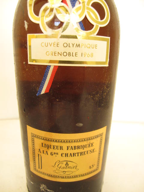 Cuvée Olimpique Grenoble 1968 - Green glass - Tall bottle - Olympic rings shaped label - Ring neck - Wax capsule