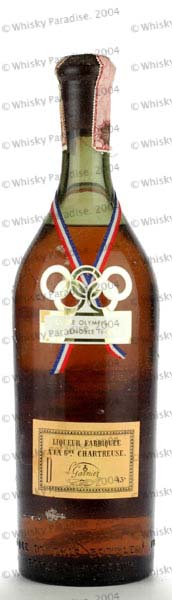 Herbal Liquor - Green glass - Tall bottle - Ribbon around the neck with gold olympic logo - Black cap