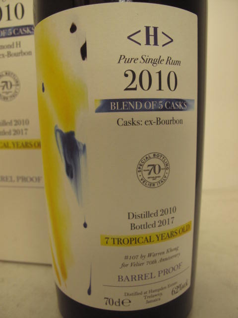 Pure single Rum - Blend of 5 casks ex bourbon - 70th anniversary Velieri import - Dark glass - Tall bottle - Picture label - Cork drive - Black capsule - limited to 1659 bottles.