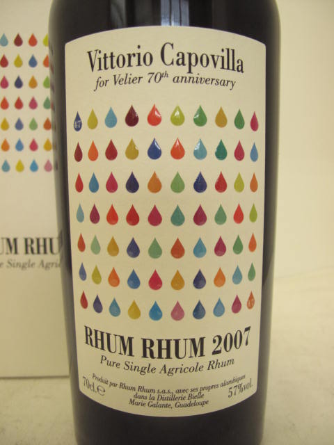 Vittorio Capovilla for Velier 70th Anniversary - SIngle Rum - Dark glass - Colored drops in white label - Cork drive - Dark capsule