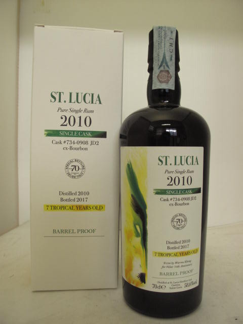 Single Cask Barrel proof (Cask 2598) - Dark glass - Dumpy bottle - White label - Cork drive - Black capsule - 70 anniversary Velier
