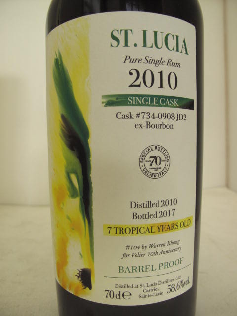 Single cask - Dark glass - Painted label - Dark capsule - Special bottling for Velier - limited to 267 bottles.