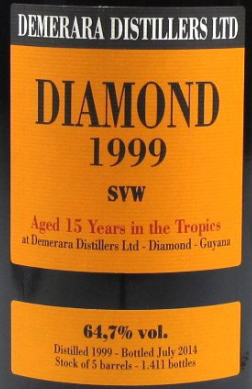 Diamond 1999 SVW - Stock of five barrels - Libited bottling of 1411 - Black bottle - Orange label - Cork drive - Black capsule