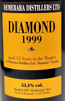 Diamond 1999 S - Four barrels - Limited bottling of 1137 - Black bottle - Orange label - Cork drive - Black capsule