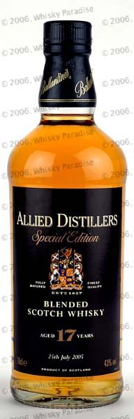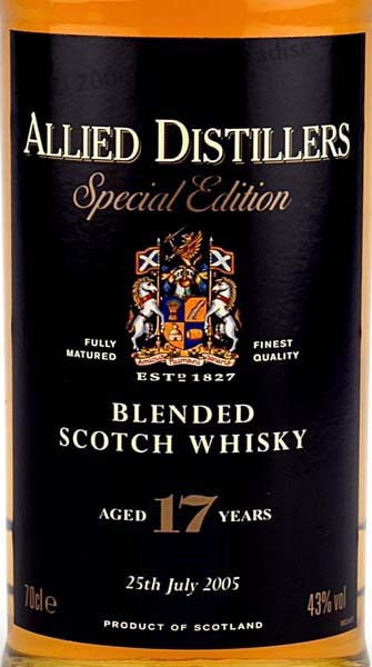Allied Distillers Special Edition - Clear glass - Tall bottle - Black label printed in white - Black capsule