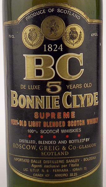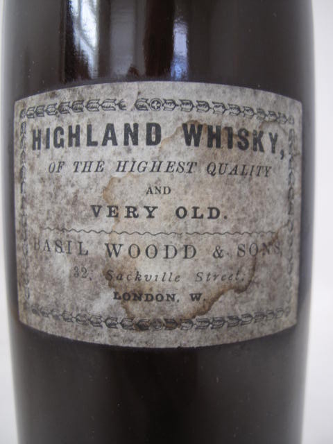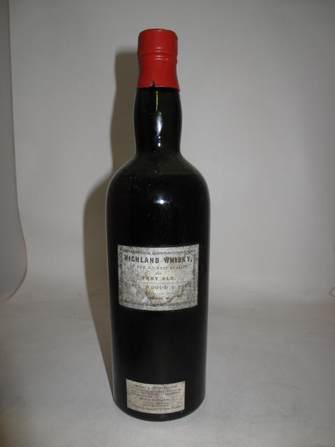 Clear Glass - Square bottle short necked - Deer in circle - Gold oval label with tartan draw printed in black & red - Cream cap